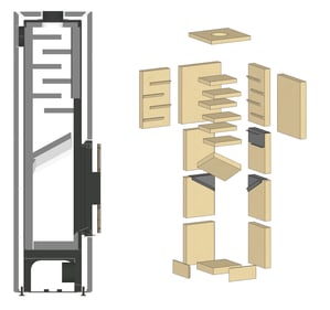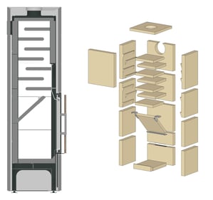 hierfür ist der Speicherkern aus stark verdichteten Schamottesteinen und keramischen Rauchgaskanälen sowie